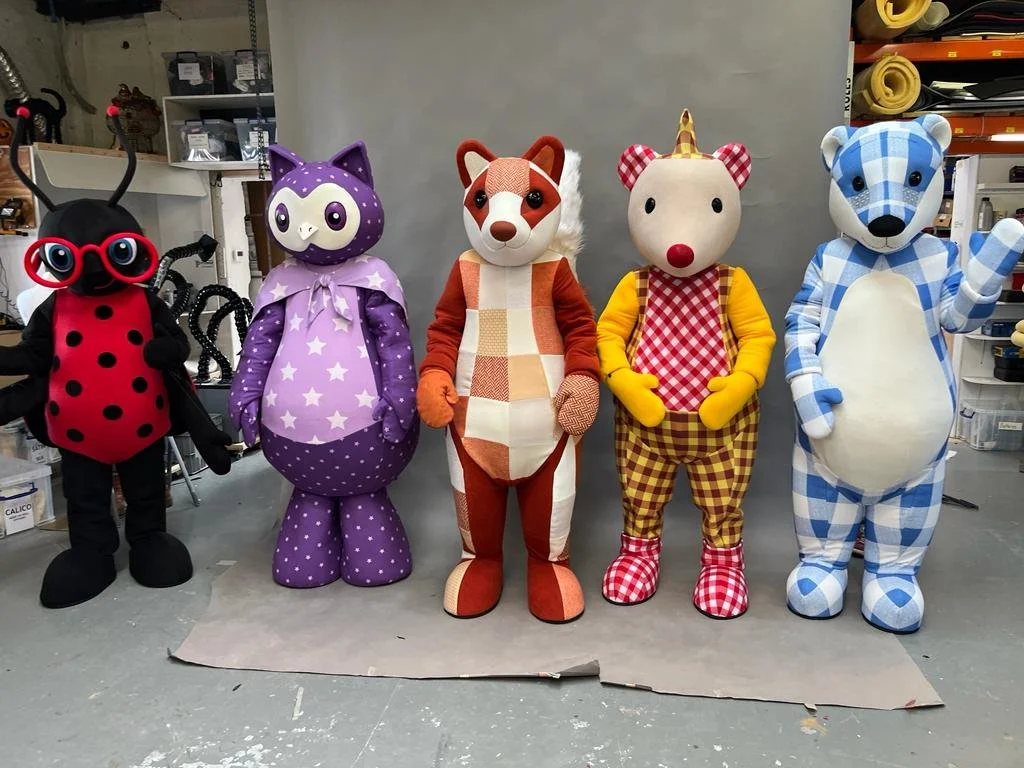 The treehouse characters were made for a TV pilot and are designed to look like home-made toys. There were 5 characters altogether; Dot the ladybird, Magnus the owl, Spike the hedgehog, Squiggle the squirrel and Badger… the badger. I made the heads as well as some of the other plastazote elements, like the feet.